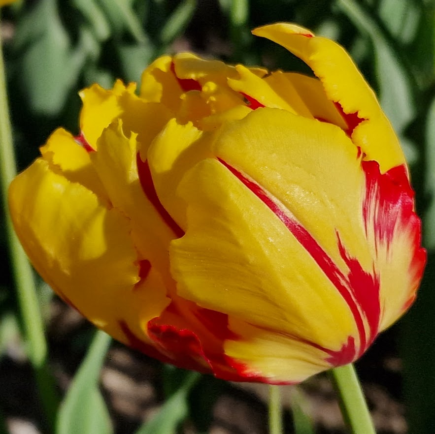 Texas Flame hehkuu keltaisena ja punaisena. Sen pinta kiiltää auringolla. Papukaijatulppaanit ovat näyttäviä pieninäkin ryhminä. Ne ovat tulppaanien karkkeja, joilla halutaan tuoda kevään kohokohta kukkapenkkiin. Kukka voi olla yksinkertainen, puoli- tai täyskerrottu. Kaikkiaan värejä löytyy valkoisesta mustaan. Valitettavasti nämä eivät juurikaan jaksa kukkia kuin ensimmäisenä keväänä. Kukinta ajoittuu keskimyöhäisestä myöhäiseen.