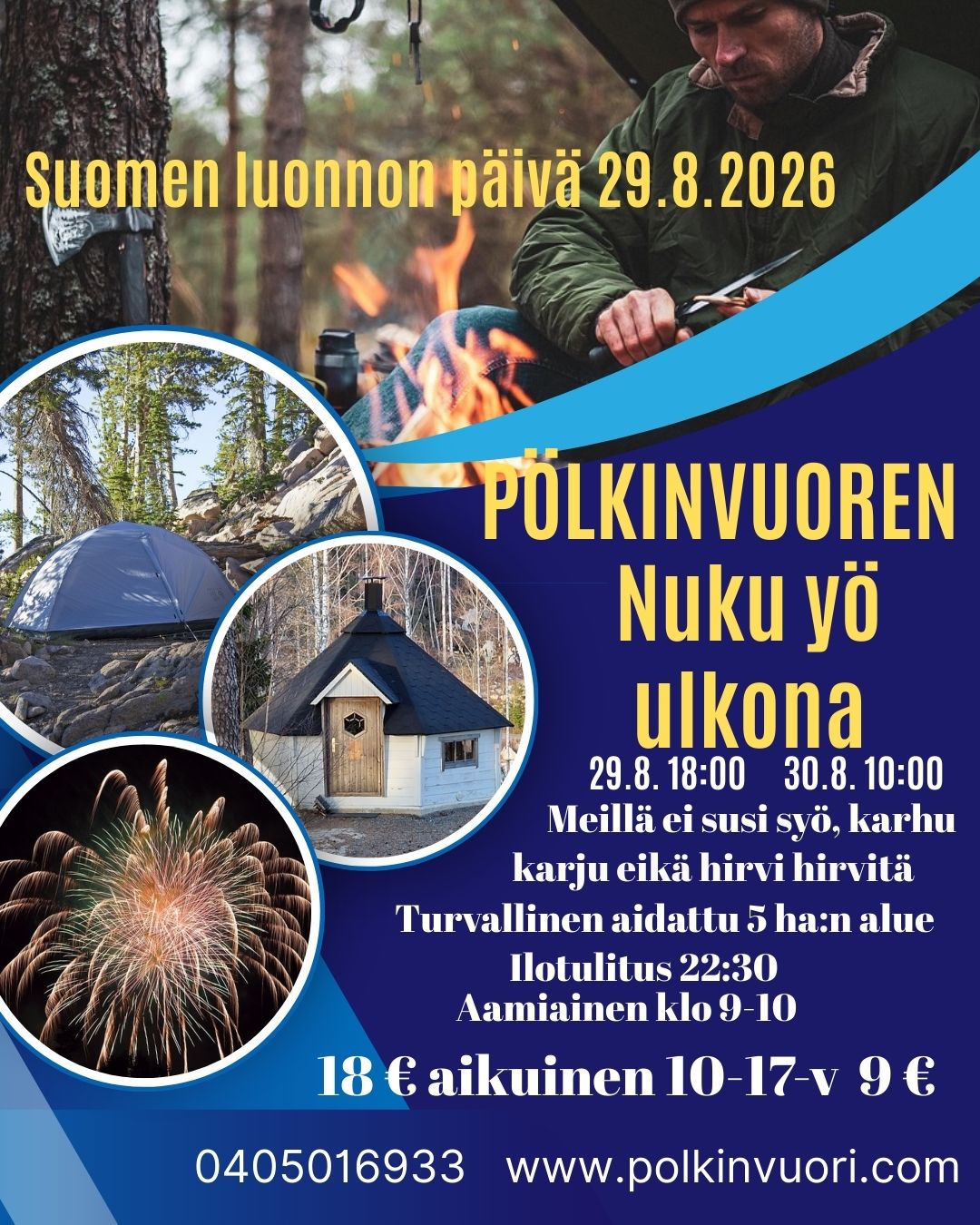 Nuku yö ulkona -tapahtuma samaan aikaan. Tapahtumaan osallistumisen saat kaupan päälle illallisen yhteydessä.
