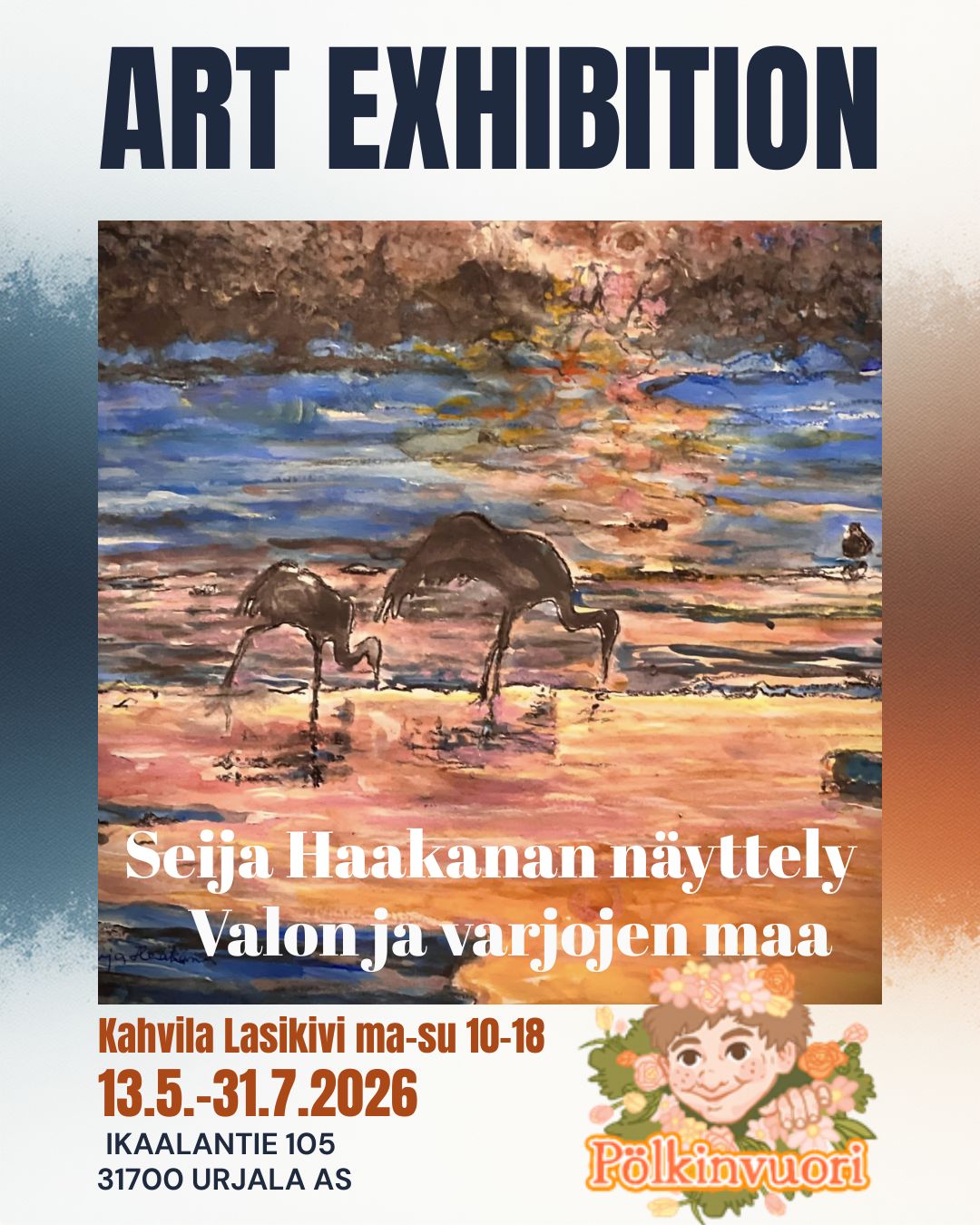 TAIDENÄYTTELY Valon ja varjojen maa – Seija Haakana 13.5.-31.7.2026 Kahvila Lasikivessä